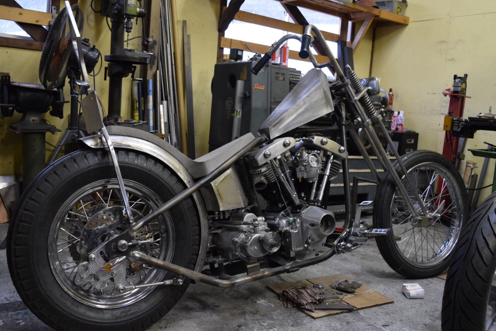 どーも。今回はショベルのヘッドライト取り付け編。使用するライトはビンテージのAliceのスクエアライトです。まずはライト本体をいろいろ便利な通常のボトムマウントに変更します。位置を決めてスプリンガーからライトステーを製作して完了です。いい位置になりかっこいいですよね〜😁後は球の加工ですよ。